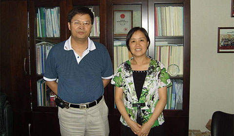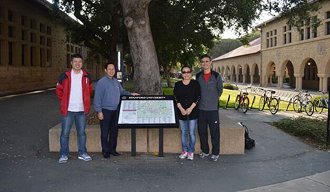 藍(lán)灣科技與中國工程院院士、北京化工大學(xué)校長譚天偉(左)團(tuán)隊(duì)合作                  藍(lán)灣科技與上海交通大學(xué)教授、美國斯坦福大學(xué)博士傅磊(右二)團(tuán)隊(duì)合作